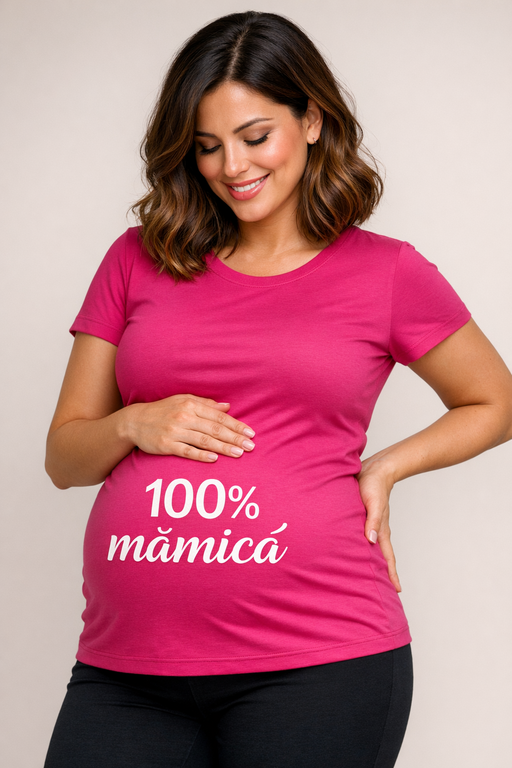 Burtica crește, încrederea și mai tare — mesajul „100% mămică” spune clar cine e șefa în perioada asta. Roz, jucăuș și comod, e genul de tricou care adună zâmbete și complimente oriunde mergi.
